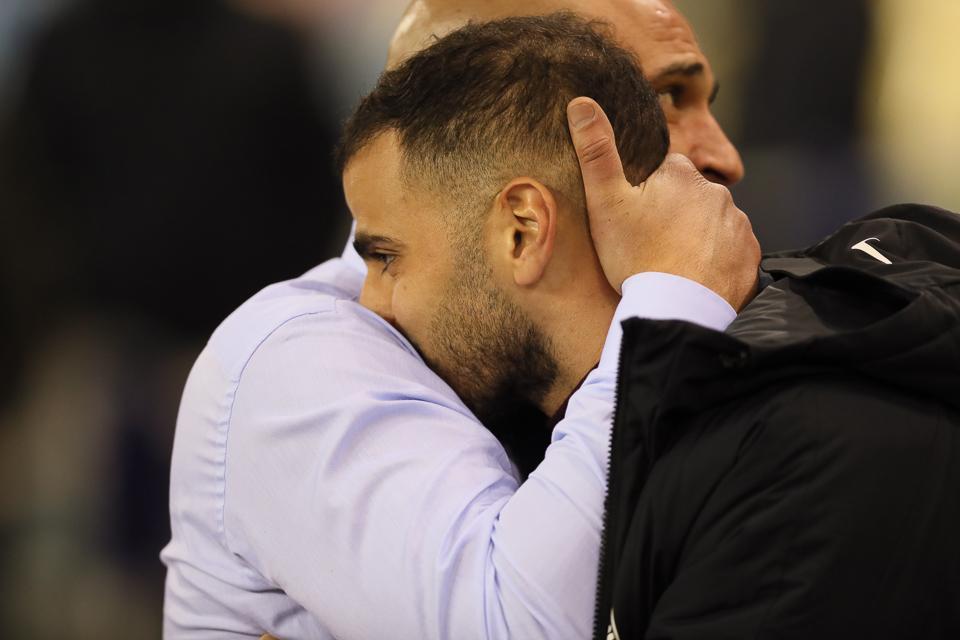 Technisch directeur Mo Allach troost Oussama Tannane na de wedstrijd