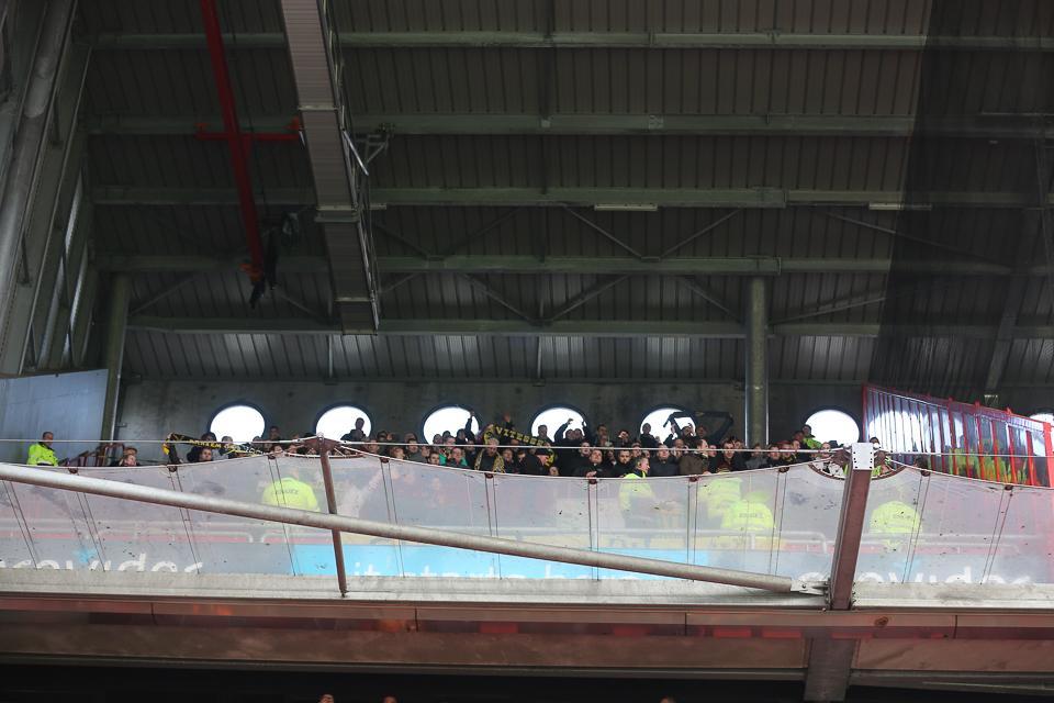 Vitesse-supporters in het uitvak die aanwezig waren bij de 150ste Arnhemse uitoverwinning