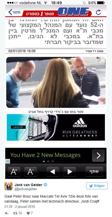 Dit weekeinde verscheen een foto waarop Bosz in gesprek is met Jordi Cruijff. De zoon van Johan Cruijff is al enige jaren technisch directeur bij Maccabi Tel Aviv en dus wordt er zowel in Nederland als in Israël meteen gespeculeerd over Bosz.