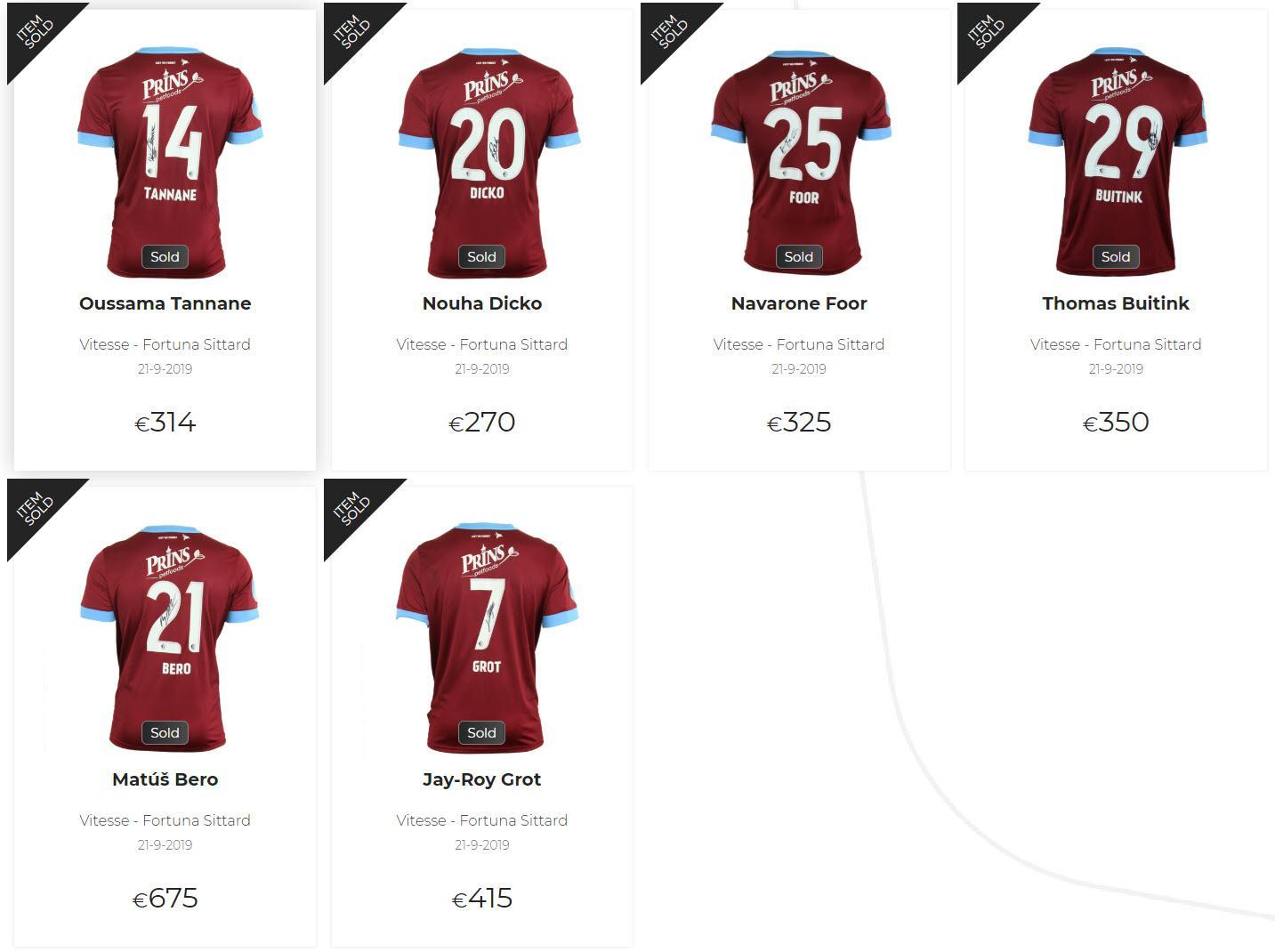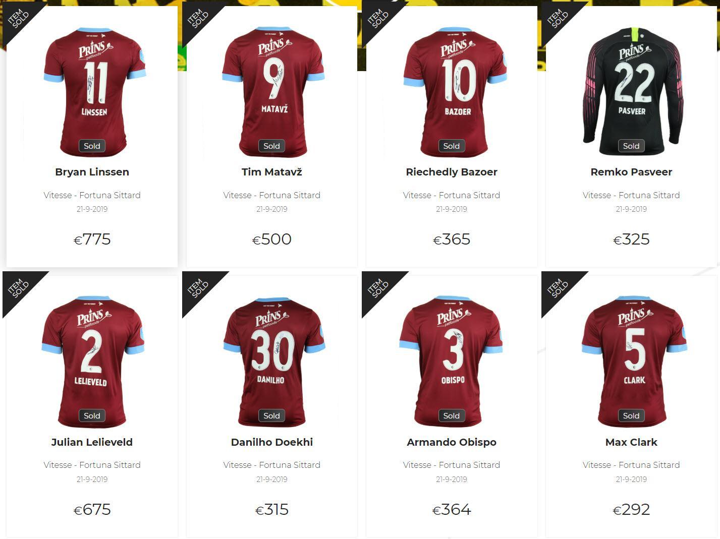 Goede tweede werden de shirts van Vitesse-talent Julian Lelieveld en middenvelder Matus Bero. De bieders hadden er € 675 per stuk voor over, ten bate van het goede doel.