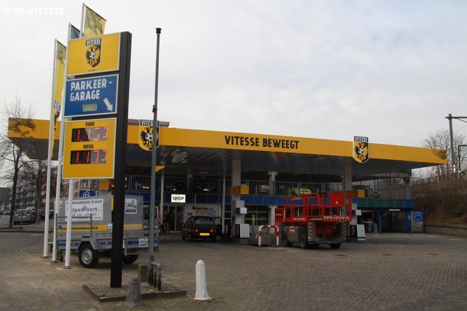 De eerste contouren van het Vitesse Tankstation zijn al duidelijk zichtbaar. Overduidelijk een Vitesse-uitstraling met een fraaie, maar toch ingetogen vormgeving.