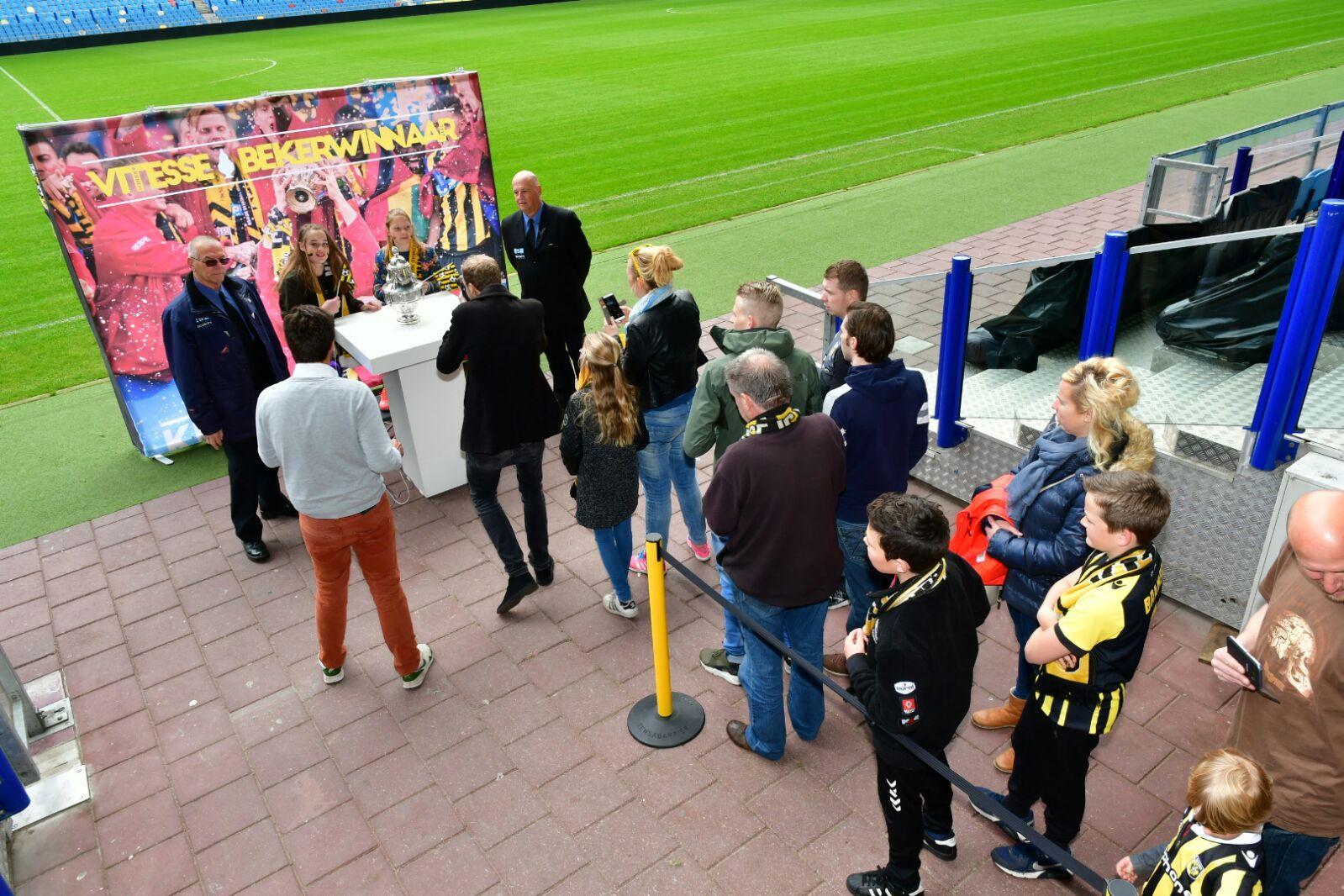 Vitesse verraste haar supporters door al heel snel de mogelijkheid te bieden om met de KNVB-beker op de foto te gaan. Dinsdagmiddag was dat het geval.