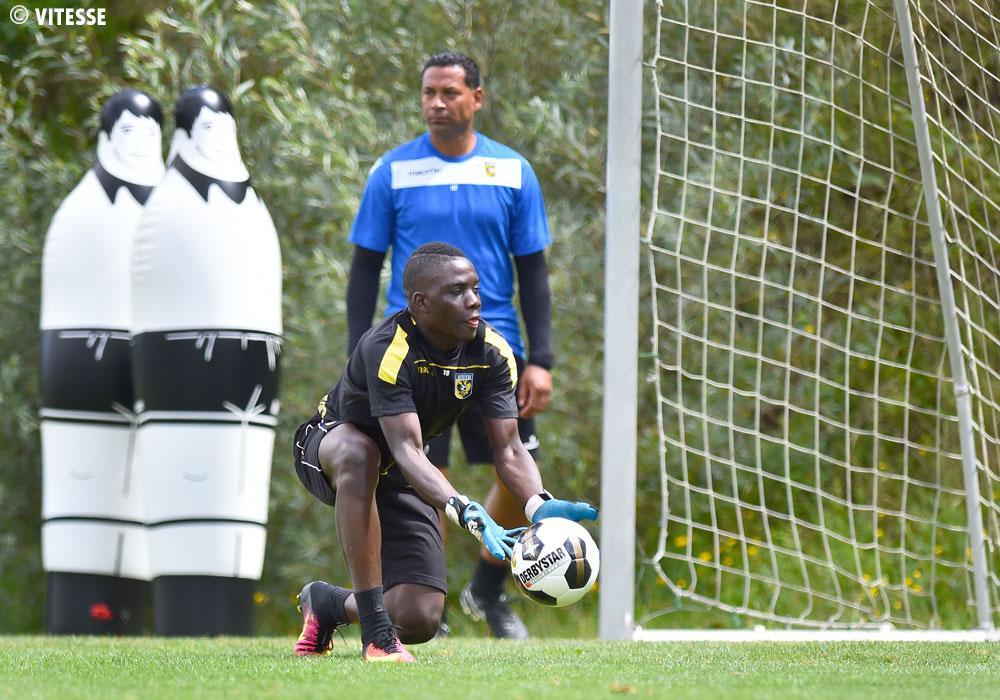 Na anderhalf uur kwam er een einde aan de ochtendtraining. Al gold dat niet voor iedereen. Terwijl jongelingen Leeroy Schorea, Lassana Faye en Thomas Buitink voor de camera van Vitesse TV stonden, werden de drie doelmannen onderworpen aan extra fysieke oefeningen.