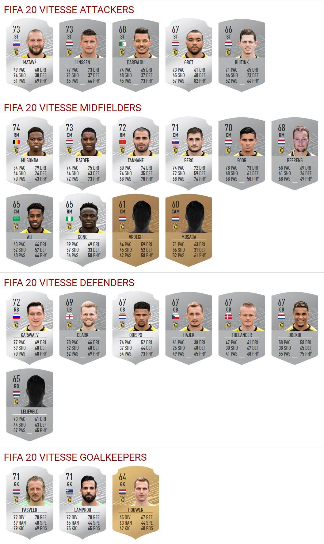 FIFA 20 is over twee weken verkrijgbaar. Dit zijn de ratings van de Vitesse-spelers.