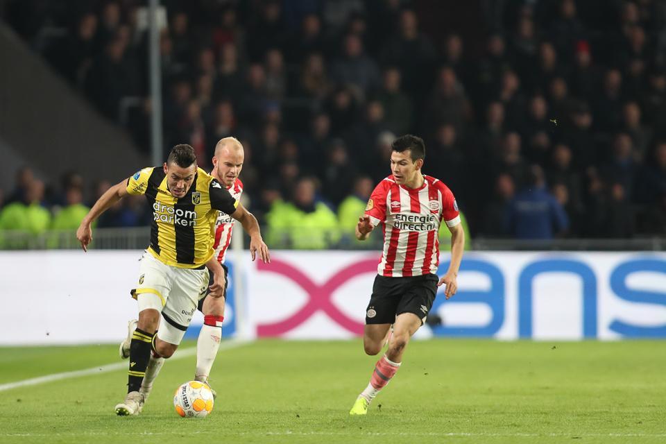 Danilho Doekhi kreeg al na veertien minuten een directe rode kaart, omdat hij een overtreding maakte op de doorgebroken Hirving Lozano. PSV wist met een man meer echter niet veel te creëren en de Arnhemmers bleven daardoor in de eerste helft nog op de been. Verder dan twee kansjes voor Lozano en Steven Bergwijn kwamen de Eindhovenaren niet.