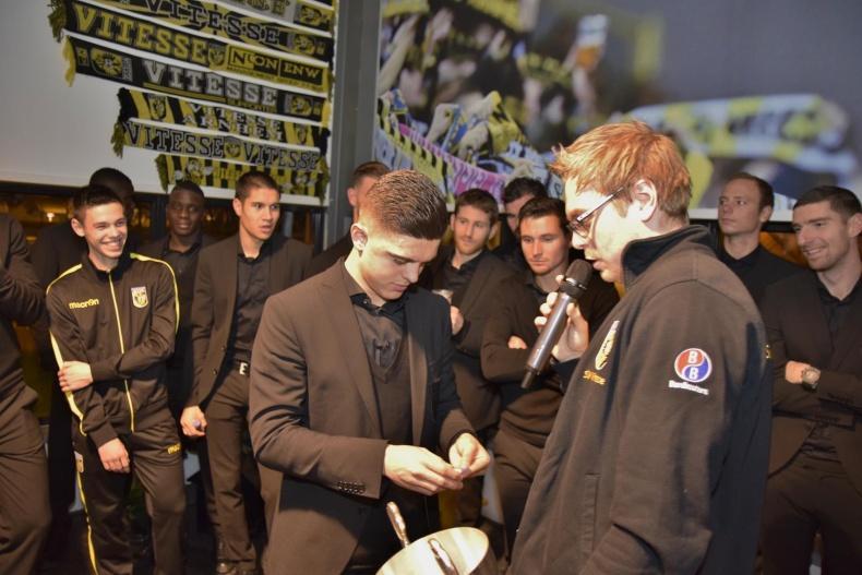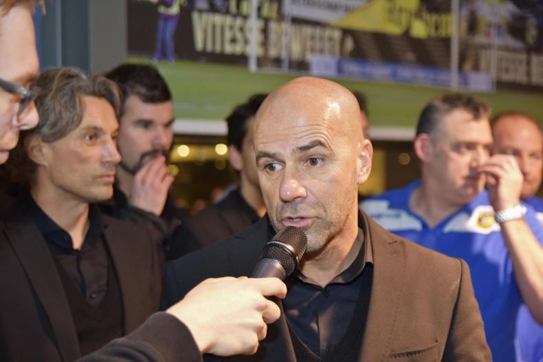 Waar normaal gesproken alleen spelers hun opwachten maken in het home na de wedstrijden, waren nu ook Peter Bosz en zijn staf aanwezig. Bosz werd ook aan de tand gevoeld op het podium. Vitesse staat er een stuk beter voor dan vorig jaar rond deze tijd. Bosz: "Ja, dat klopt. En ik vind dat we dat met zijn allen goed hebben gedaan met toch weer een aantal andere jongens die we hebben ingepast."