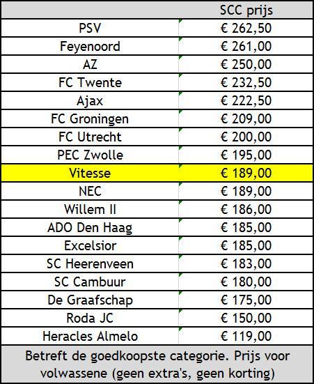 Vergelijken we de goedkoopste seizoenskaartoptie voor een volwassene met de overige eredivisie clubs, dan zijn supporters bij maar liefst 8 clubs duurder uit.