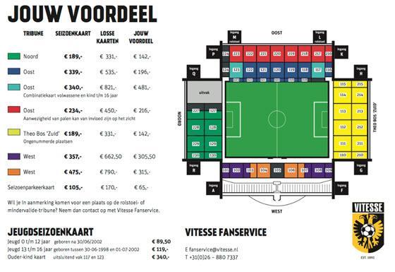 Ondanks een succesvol seizoen waarbij de competitie werd afgesloten met een 5e plaats en Europees voetbal werd behaald via de play-offs, heeft Vitesse haar seizoenskaarten prijzen niet verhoogd. Dat is overigens al het derde seizoen op rij het geval.