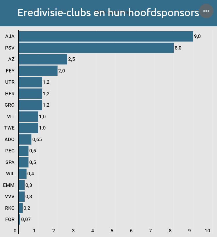 Deze bedragen betalen shirtsponsors aan de Eredivisie-clubs