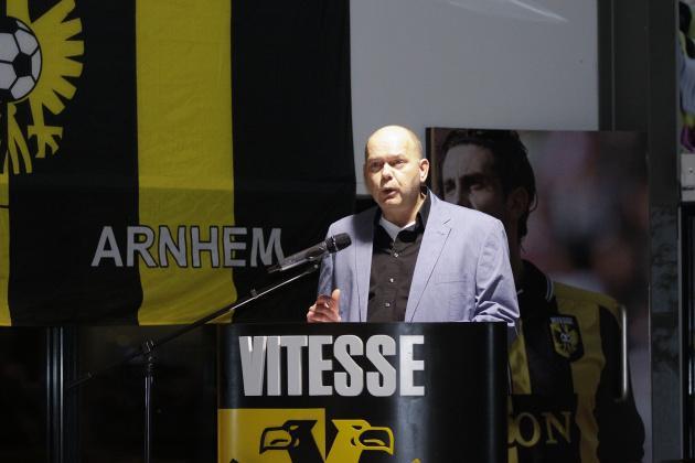 Dick ontving de zilveren SV Lid van Verdiensten-speld en een presentje voor zijn inzet voor de Vitesse-supporters.