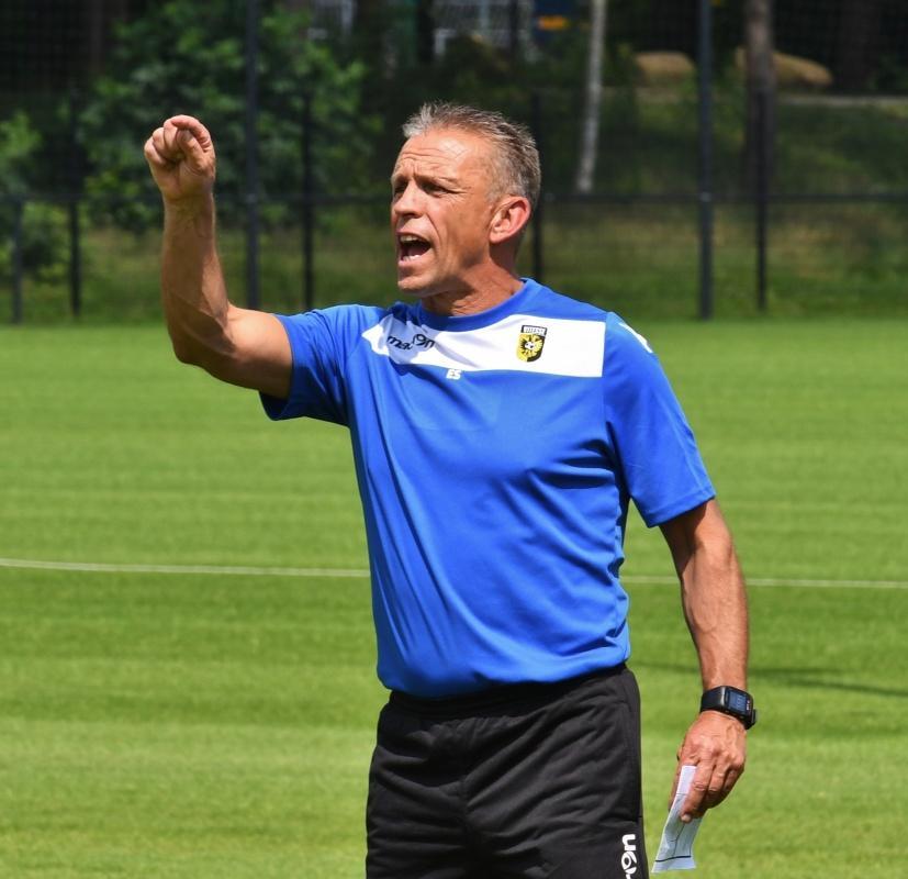 De nuchtere Gelderlander legt in de kern zijn visie uit die hij projecteert op deze spelersgroep. 'Ik hamer elke training op een goede veldbezetting. We willen goed positiespel spelen. Niet te veel lange ballen en hoge ballen door de lucht. Als jij je tactiek wil laten slagen moet je de wedstrijd willen controleren. En dan moet je dus de bal hebben. Ik erger me als we die kwijt zijn, want ik heb weinig geduld. Ik wil de fouten bij de tegenstander afdwingen. Zo werk ik dan ook.'