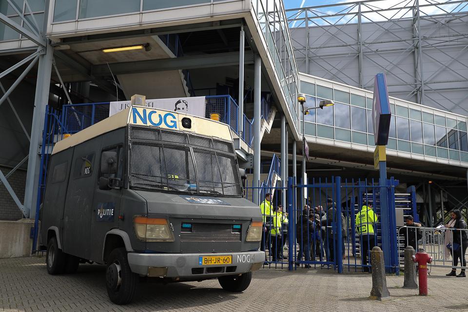 De ME was na de wedstrijd nadrukkelijk aanwezig om confrontaties tussen de twee supportersgroepen te voorkomen.