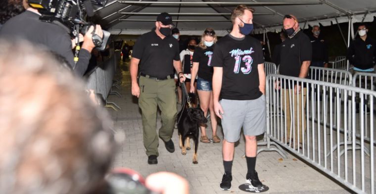 In België kijkt men wél met veel interesse naar de ontwikkelingen in de Verenigde Staten, waar de speciaal getrainde honden worden ingezet bij thuiswedstrijden van NBA-team Miami Heat. De Mechelse herders lopen langs een rij supporters, die opgesteld staan voor het stadion. Negeert de hond een bezoeker, dan mag deze het stadion in. Blijft de hond zitten voor een fan, dan is dat een teken dat die besmet zou zijn met het coronavirus.