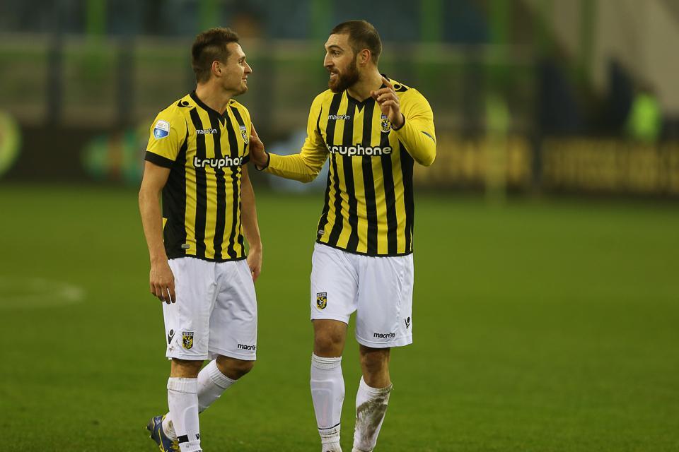 Vitesse-aanvoerder Guram Kashia liep tijdens Vitesse vs PEC Zwolle tegen zijn vijfde gele kaart van de competitie aan.