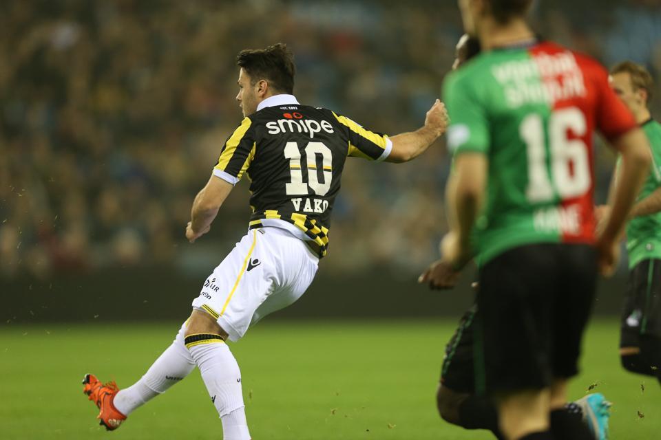 In NOVEMBER laat Vitesse steken vallen tegen AZ (0-2) en ADO Den Haag (2-2). De Gelderse derby tegen aartsrivaal NEC wordt in GelreDome met 1-0 gewonnen. Vako Qazaishvili is de held van de dag.