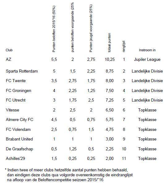 Ranglijst Beloften 2015/'16 + virtuele stand instroom Piramide: