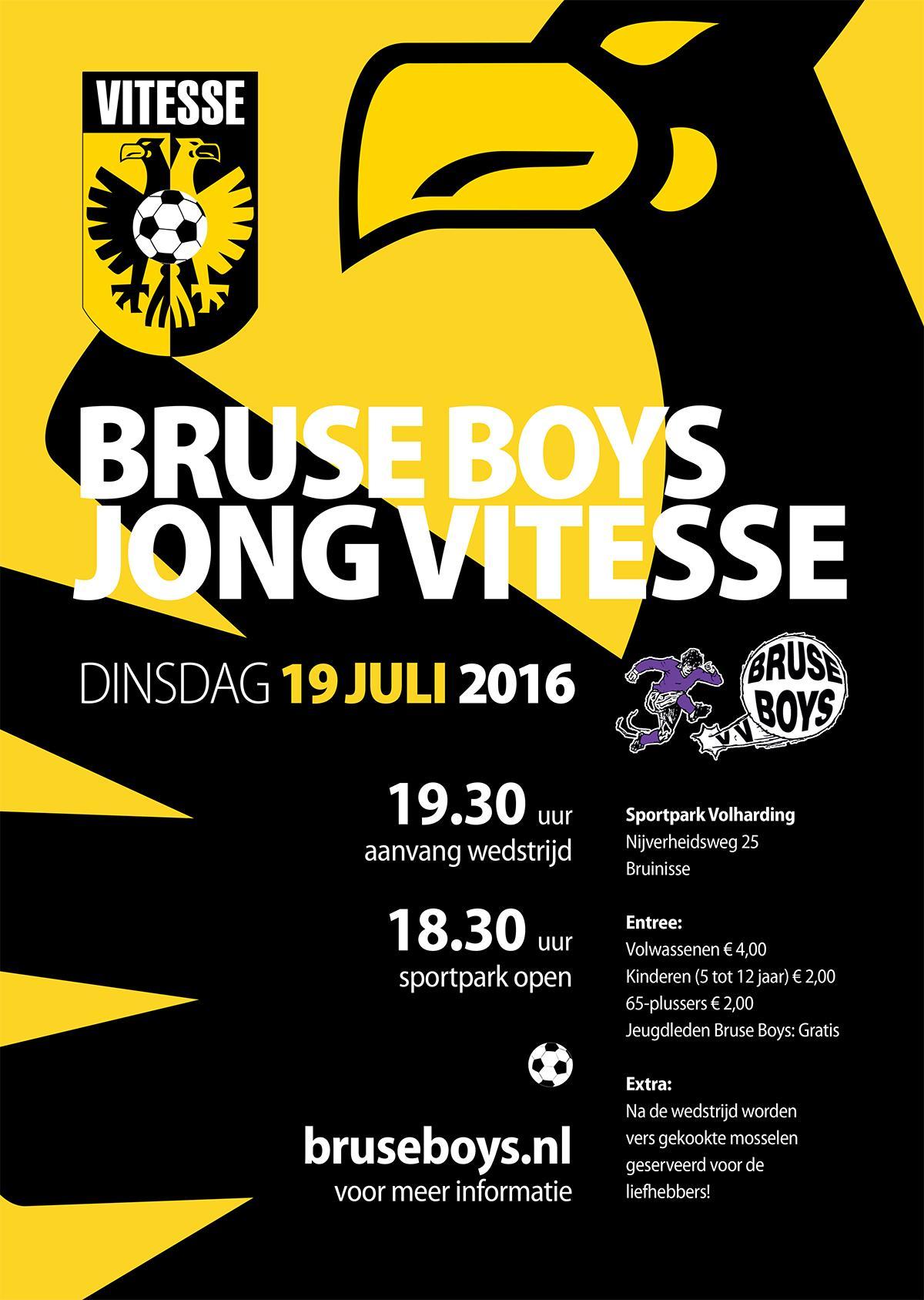 De vriendschappelijke wedstrijd tegen Jong Vitesse staat gepland op dinsdagavond 19 juli. De aanvang is 19.30 uur. De entreeprijs voor volwassen bedraagt vier euro, voor kinderen tot 12 jaar en 65-plussers twee euro en voor jeugdleden van Bruse Boys is de toegang gratis.