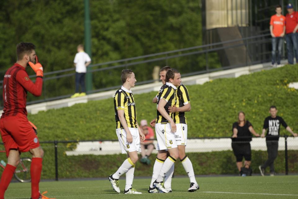 Jong Vitesse had nog een paar kansen om de score uit te breiden. Mitchell van Bergen leek te gaan scoren, maar het lukte hem niet de bal tussen de palen te krijgen. Het leek er sterk op dat Jong Vitesse nog een derde doelpunt zou maken. Arshak Koryan wist nog een keer de paal te raken.