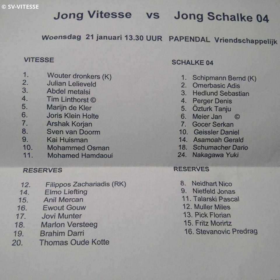 Jong Vitesse heeft woensdagmiddag een oefenduel tegen Jong Schalke 04 met 4-3 gewonnen. Huisman (2x), Hamdaoui en Korjan scoorden.
