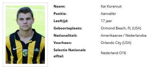 Kai Koreniuk zette in augustus 2014 zijn handtekening onder een driejarig contract bij Vitesse. De Amerikaanse aanvaller komt het komend seizoen uit in de O19 van de Vitesse-voetbalacademie.
