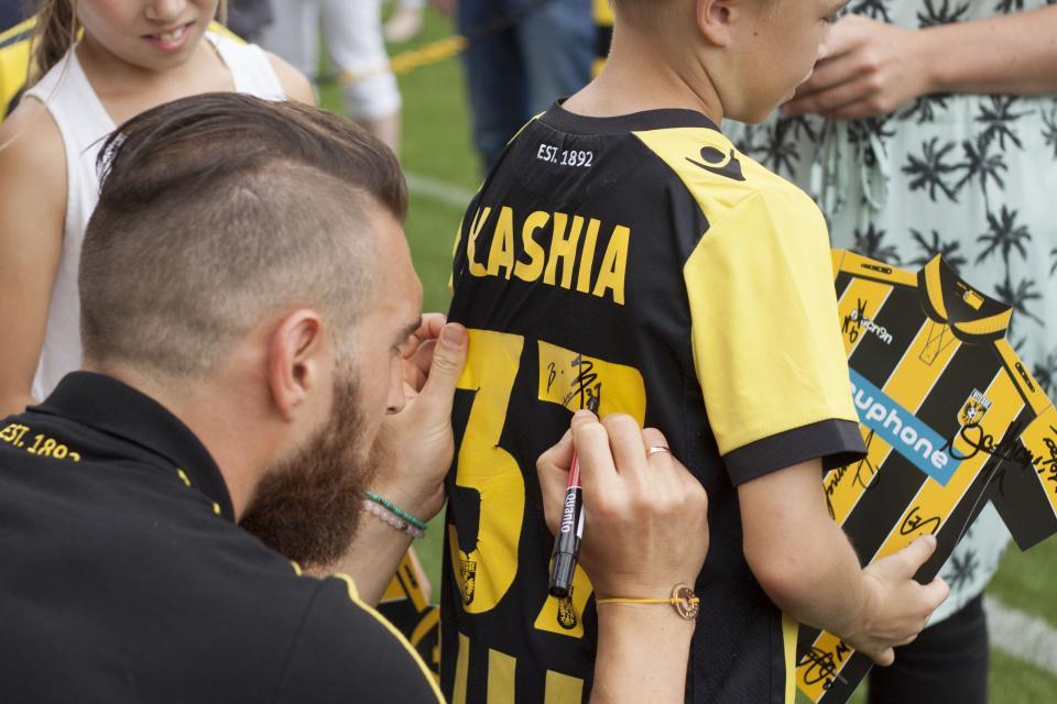 Bij Vitesse vormden Kashia en Van der Heijden enkele seizoenen het centrum van de defensie. Ze hoopten op het veld tegenover elkaar te staan, maar de Feyenoorder is vanwege een gele kaart geschorst. "Ja, erg jammer", zegt Kashia tegen ELF Voetbal. "Ik vroeg Jan-Arie nog of hij misschien niet tegen ons durfde te spelen of dat hij iets eerder vakantie wilde hebben, haha."