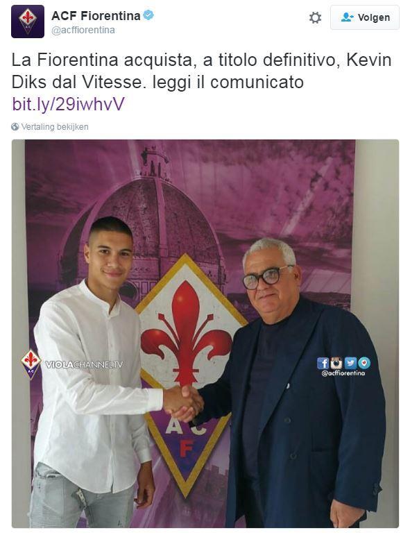 De negentienjarige vleugelverdediger is voor een onbekend bedrag overgenomen van Vitesse, waar hij nog een contract voor twee seizoenen had. Vitesse kondigde dinsdag al aan dat er een akkoord was bereikt met Fiorentina over een transfersom en een dag later is de deal dus afgerond. Diks kwam in twee jaar tijd tot 52 competitiewedstrijden voor Vitesse.