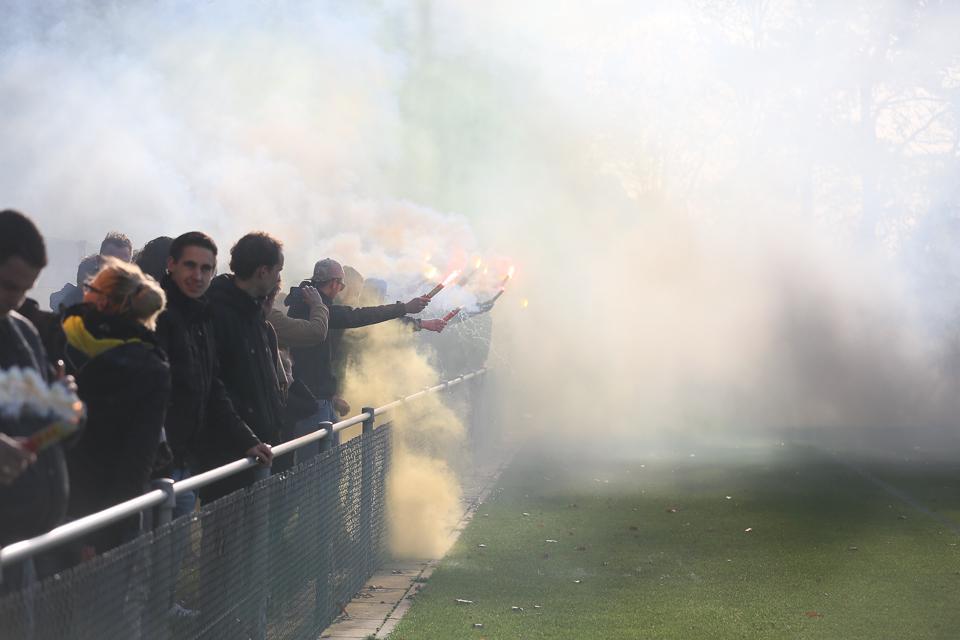 Hoe anders is de sfeer in Nijmegen. Een verbod op vuurwerk, aangekondigd fouilleren en veel machtsvertoon van de politie. Aanleiding voor de Nijmeegse supportersverenigingen HKN en Legio Noviomagum om de supporters op te roepen de laatste training in Nijmegen te boycotten.