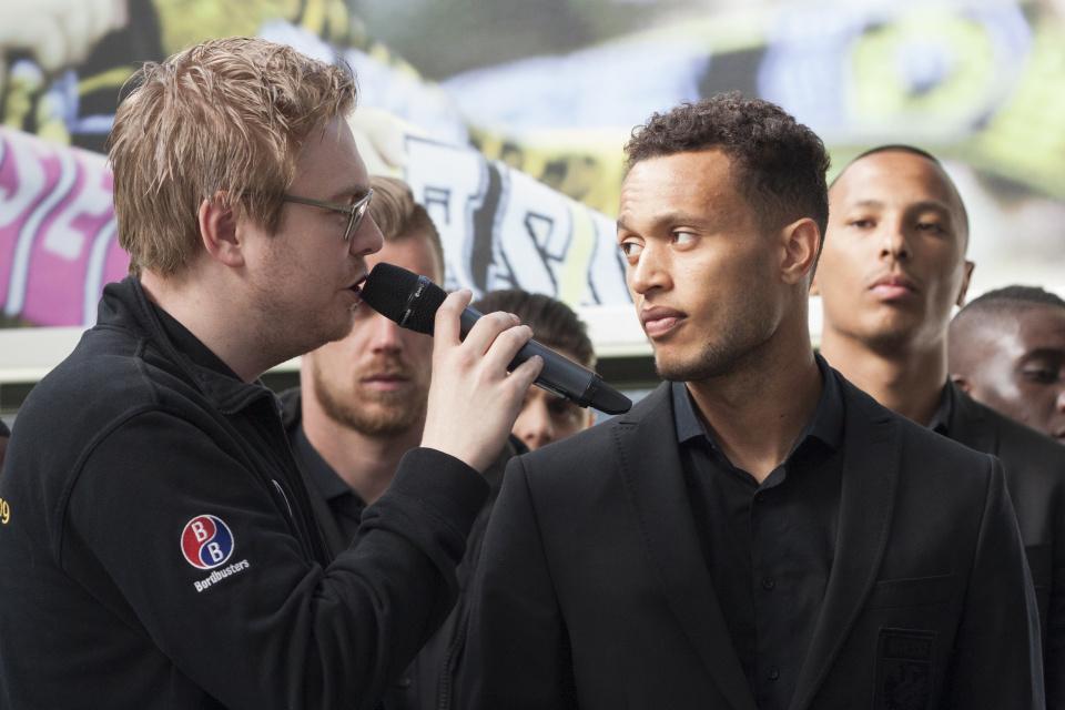 Lewis Baker ontving in Supportershome Monnikenhuize namens de Vitesse-supporters een fotolijst en bos bloemen. Dat gold voor alle spelers waarvan de contract – of de huurperiode afliep.
