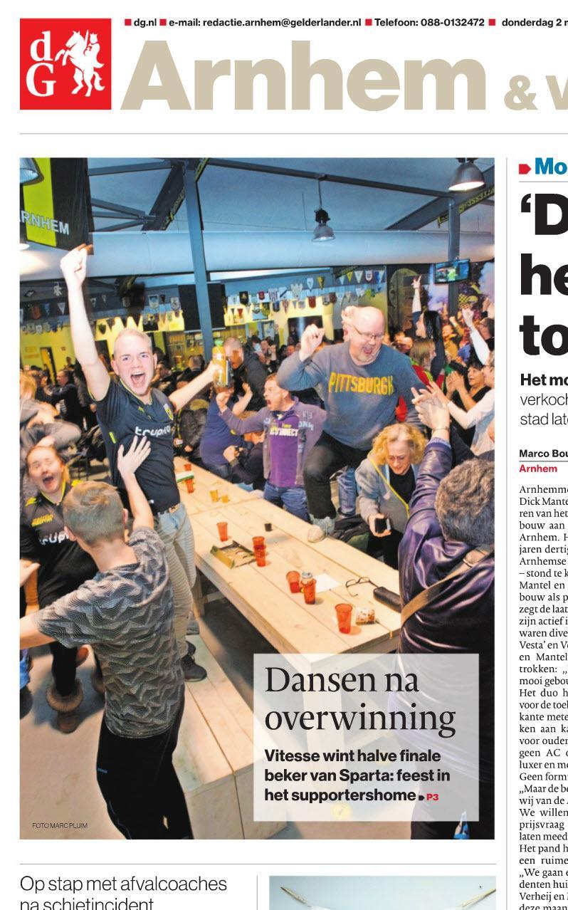 De paar honderd Arnhemmers die wel mee naar Rotterdam zijn, maken lange tijd meer lawaai dan de thuisblijvers. Een enkele enthousiaste kreet klinkt door het supportershome als Rashica in de eerste minuten telkens op rechts doorbreekt. En natuurlijk is er een luide lofzang op Lewis Baker als die Vitesse binnen het kwartier op voorsprong zet. Toch staan de gezichten in het supportershome daarna vooral gespannen.
