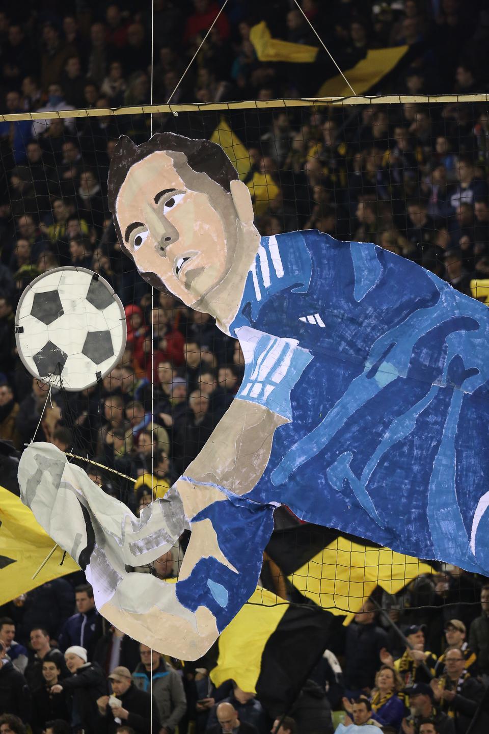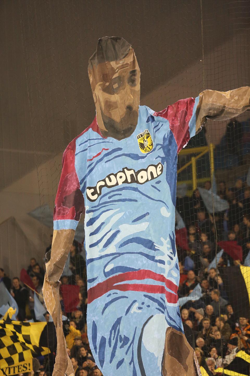 Voorafgaand aan het competitieduel Vitesse – Ajax sierde een mooie spelsituatie creatief weergegeven op de Theo Bos-tribune met o.a. een grabbelende Ajax-keeper. De makers hadden een voorspellende gave.