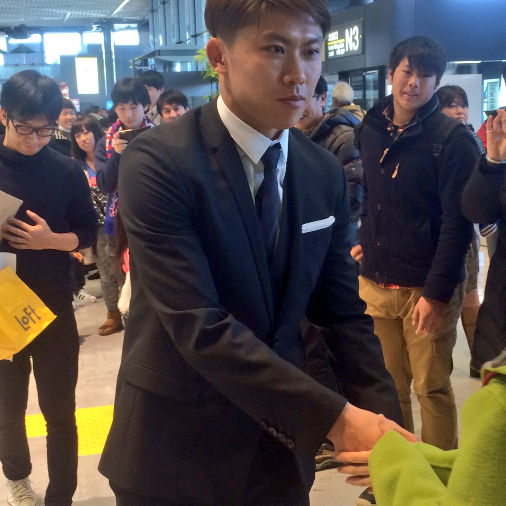 Nieuwe aanwinst Kosuka Ota nam onder grote belangstelling het vliegtuig in Tokyo. Hij meldt zich maandag in het trainingskamp in Spanje.