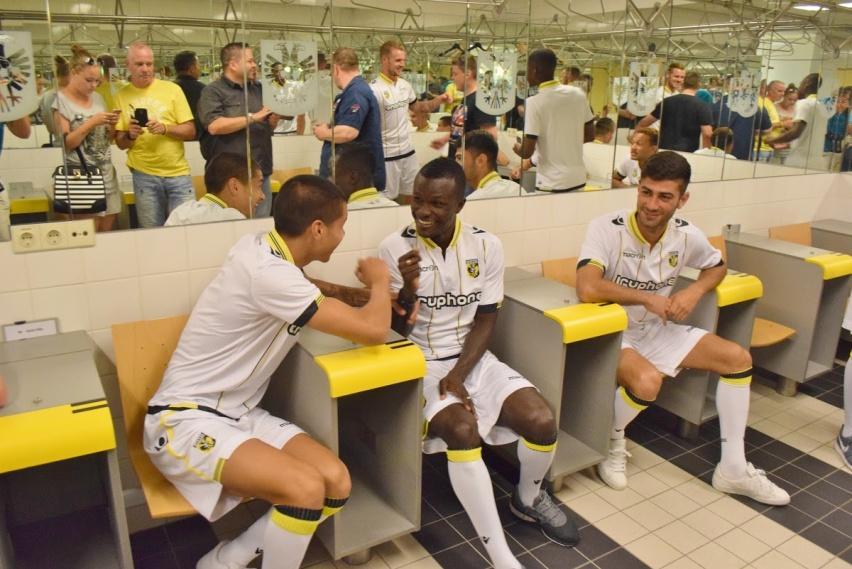 Zij werden uitgenodigd om naar GelreDome te komen en mochten als eerste de kleedkamer van Vitesse in waar als verrassing de hele Vitesse-selectie in nieuwe uittenue zat.