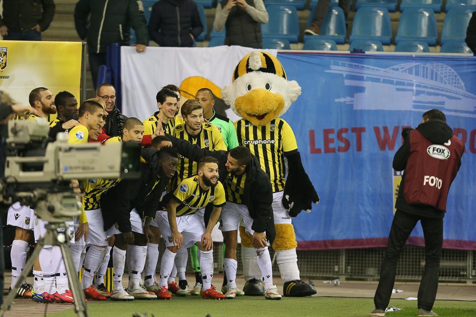 Vervolgens bekeken zij de wedstrijd vanaf een heuse Vitesse-loveseat en gingen na afloop van de wedstrijd op de foto met een feestende Vitesse-selectie.