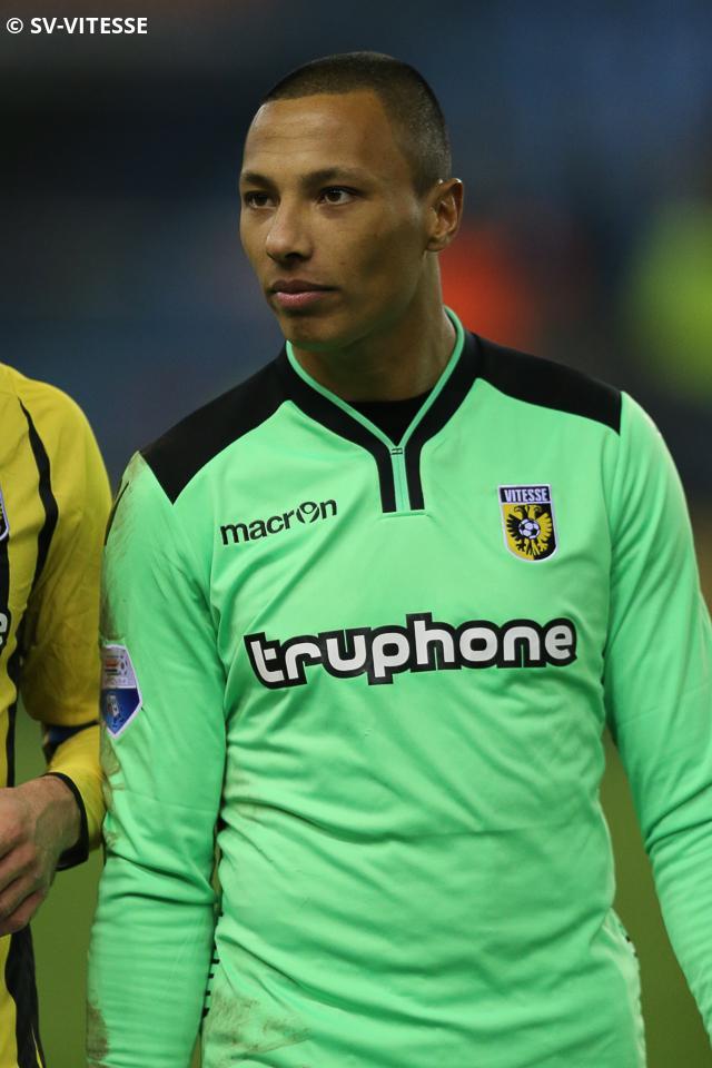 Vitesse-doelman Eloy Room pareerde op schitterende wijze een vrije trap van PSV’er Memphis Depay.
