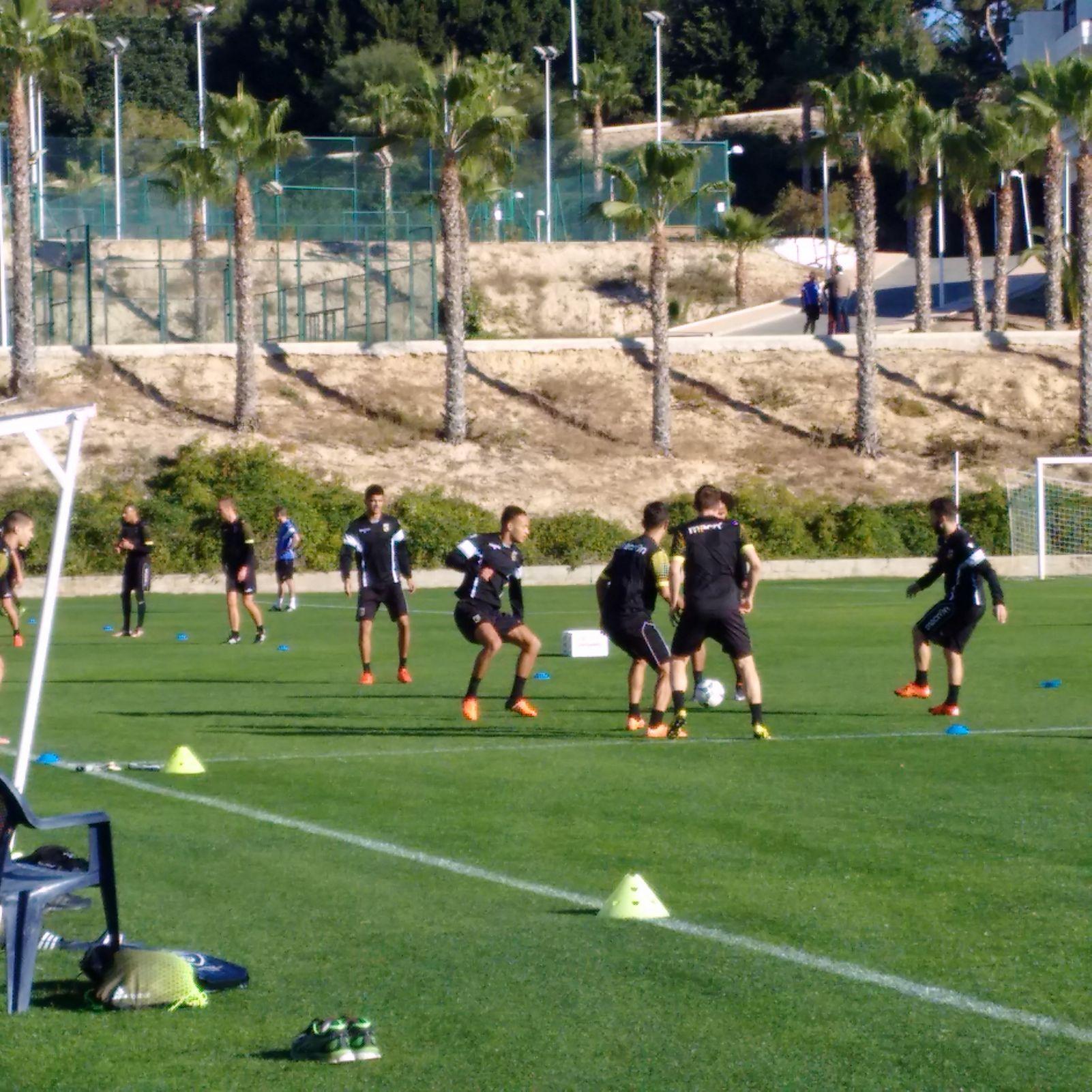 Op het veld werd geconcentreerd toegewerkt naar de krachtmeting die om 16.30 uur live te zien is via Vitesse.nl/live. Ook geconcentreerd waren de aanwezige toeschouwers die de training onder een heerlijk zonnetje bekeken. Onder hen ook een delegatie van hoofdsponsor Truphone die donderdagavond in het hotel gearriveerd waren en natuurlijk ook het oefenduel in La Manga bijwonen.
