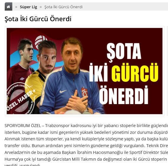 Het Turkse Sporyorum meldt dat trainer Shota Arveladze van Trabzonspor op zoek is naar twee ervaren verdedigers en zijn oog op onder andere de aanvoerder van Vitesse Guram Kashia heeft laten vallen.