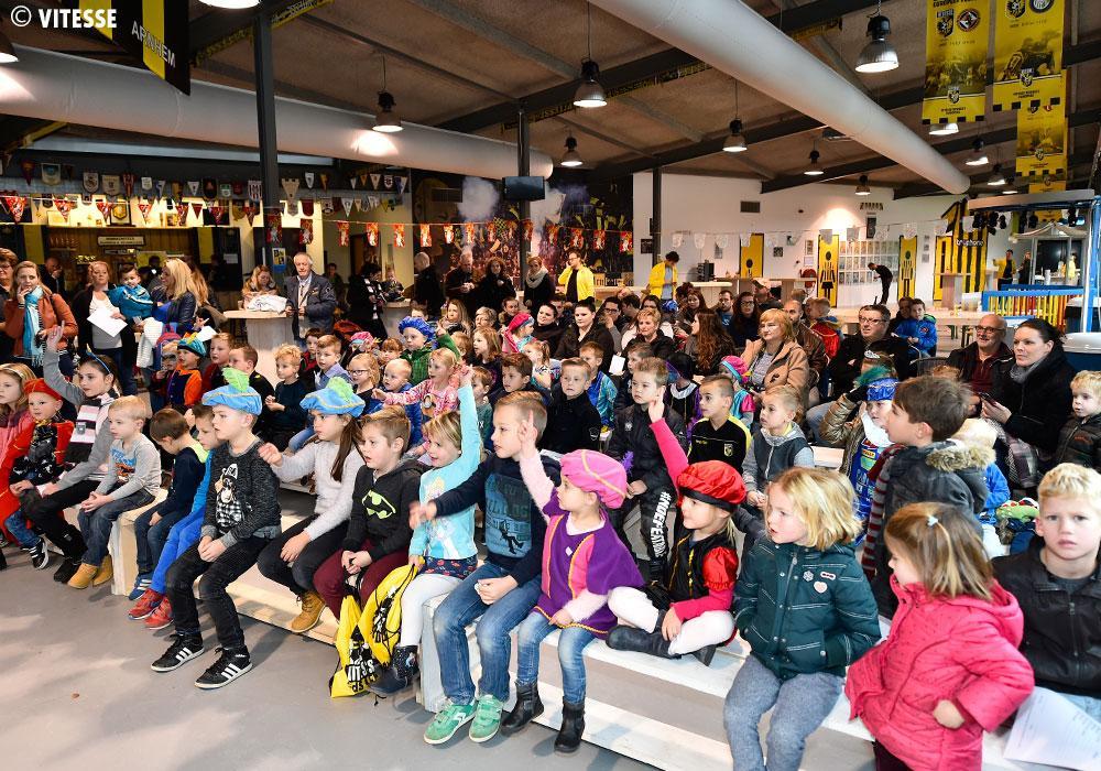 Supportershome Monnikenhuize was speciaal voor de Sint omgetoverd in een waar speelparadijs. Nadat de kinderen met luid gezang Sinterklaas hadden binnengelaten en er samen nog meer liedjes werden gezongen, vertelde Sinterklaas dat de kinderen in het Home hun Pietendiploma konden halen.
