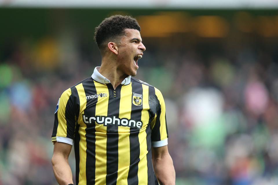 Aanvaller Domenic Solanke van Vitesse werd vrijdag na de training even aangeschoten door een supporter.