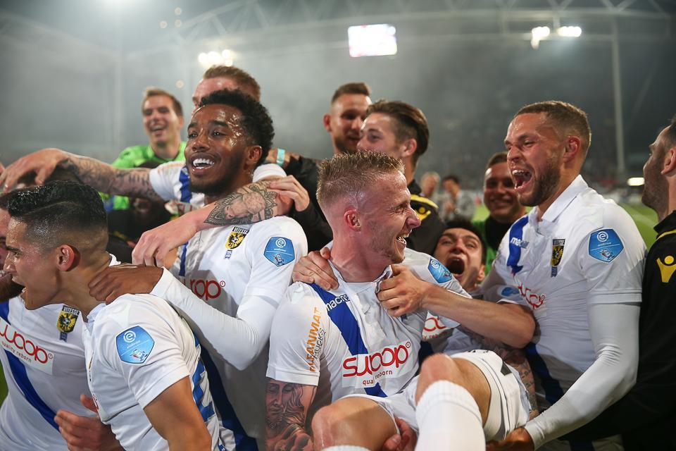 Het is de hoofdbrekens waard geweest. Het risico. Het ingrijpen. Marc van Hintum en Joost de Wit hebben als directie in april het zwaarste en wreedste redmiddel moeten gebruiken om Vitesse uit de dood te laten herrijzen. Maar nu, na een werkelijk zinderende finale van de play-offs, blijkt het ontslag van Henk Fraser en de komst van interim-coach Edward Sturing de sleutel tot het succes in Arnhem. Vitesse plaatste zich voor de tweede voorronde van de Europa League. De missie is geslaagd.