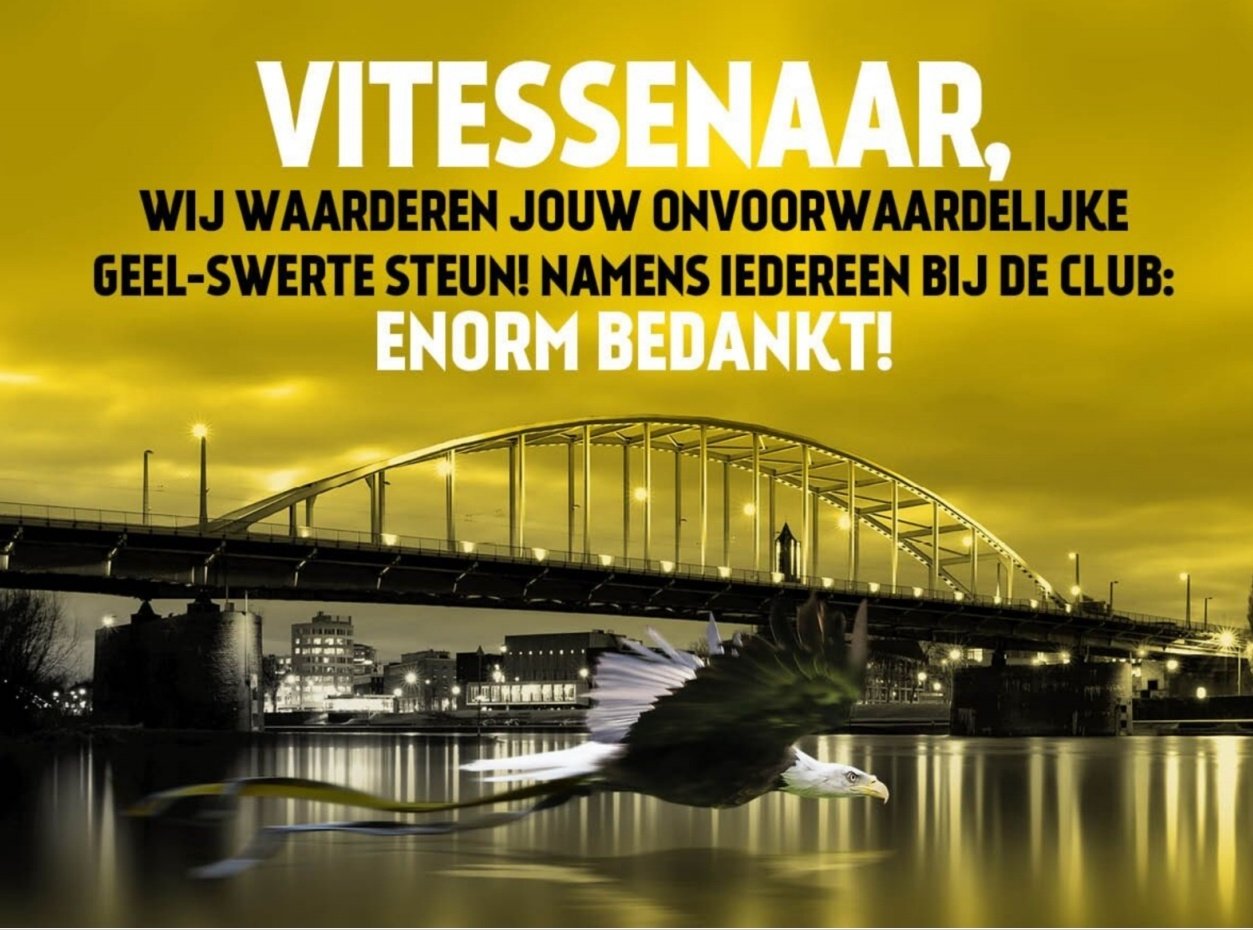 De Vitesse-supporters die recht hebben op restitutie kiezen massaal voor optie 1 waarmee ze het tegoedbedrag doneren aan hun club Vitesse. Ze ontvangen dan onderstaande reactie: