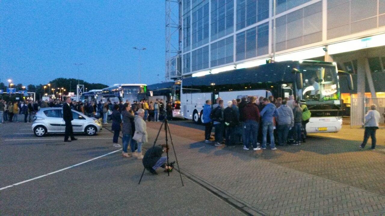 De bus zelf had schade aan de spiegel. Supporters hebben een oponthous van bijna ongeveer 40 minuten gehad.