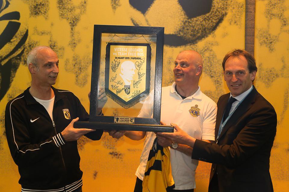Afgelopen zondag, voorafgaand aan de wedstrijd tegen FC Utrecht, heeft SV-voorzitter Stef ten Thij de vaan ontvangen uit handen van Hein van Boxel van de Stichting Jaimy in het bijzijn van Vitesse-directeur Joost de Wit.