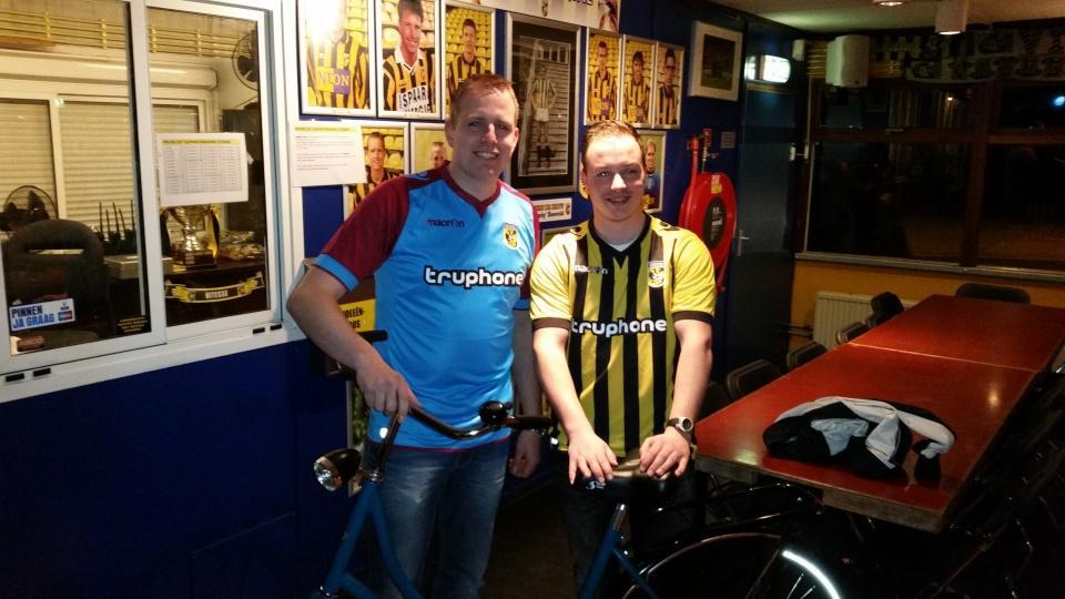 Winnaar van de hoofdprijs Floris met zijn gewonnen thuisshirt en fiets