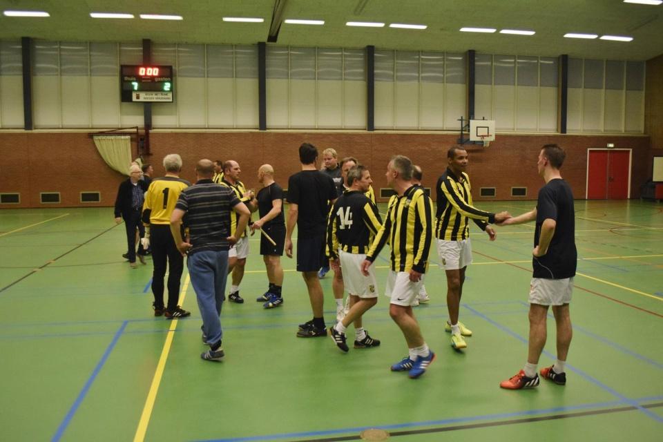 De voormalige Vitesse-coryfeeën waren een maatje te goot voor het nieuw geformeerde zaalvoetbalteam van de Supportersvereniging Vitesse. De uitslag werd 7-2.