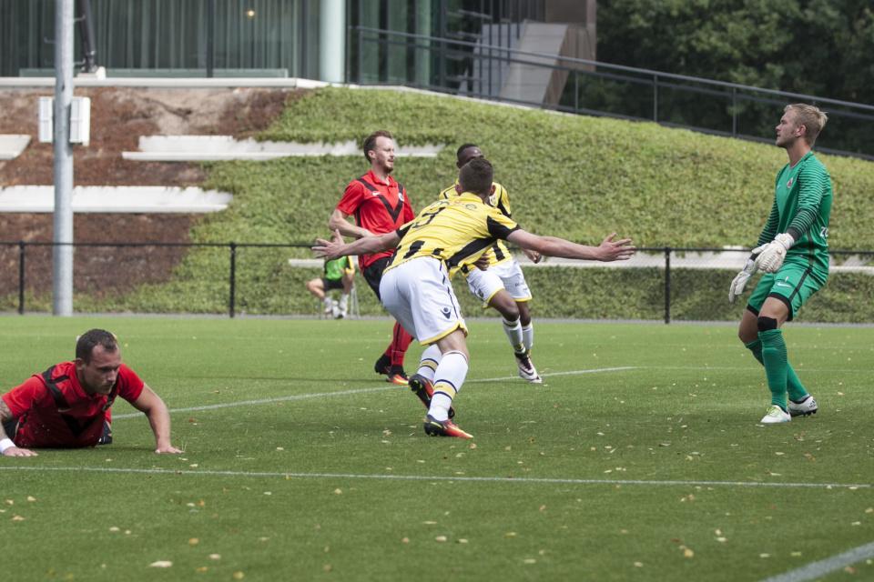 Buitink: “Ik train veel met John Lammers op loopacties. Ook kijk ik veel naar Ricky van Wolfswinkel. Dat helpt mij in mijn ontwikkeling. Bij het eerste doelpunt loop ik een voorzet van Arshak binnen. Bij het tweede doelpunt krijg ik de bal en schiet ik snel in de lange hoek, zodat de keeper hem niet verwacht.”
