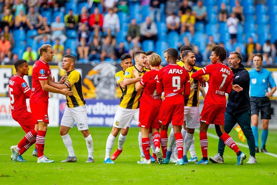 Vitesse schakelde door het opstootje naar een versnelling hoger en ging op zoek naar de overwinning tegen een overduidelijk door Europees voetbal eerder in die week, vermoeid AZ. En dat lukte uiteindelijk door toenemend druk zetten op het Alkmaarse doelgebied en, na hands van AZ-speler Aboukhlal, via de benutte strafschop van Matus Bero.