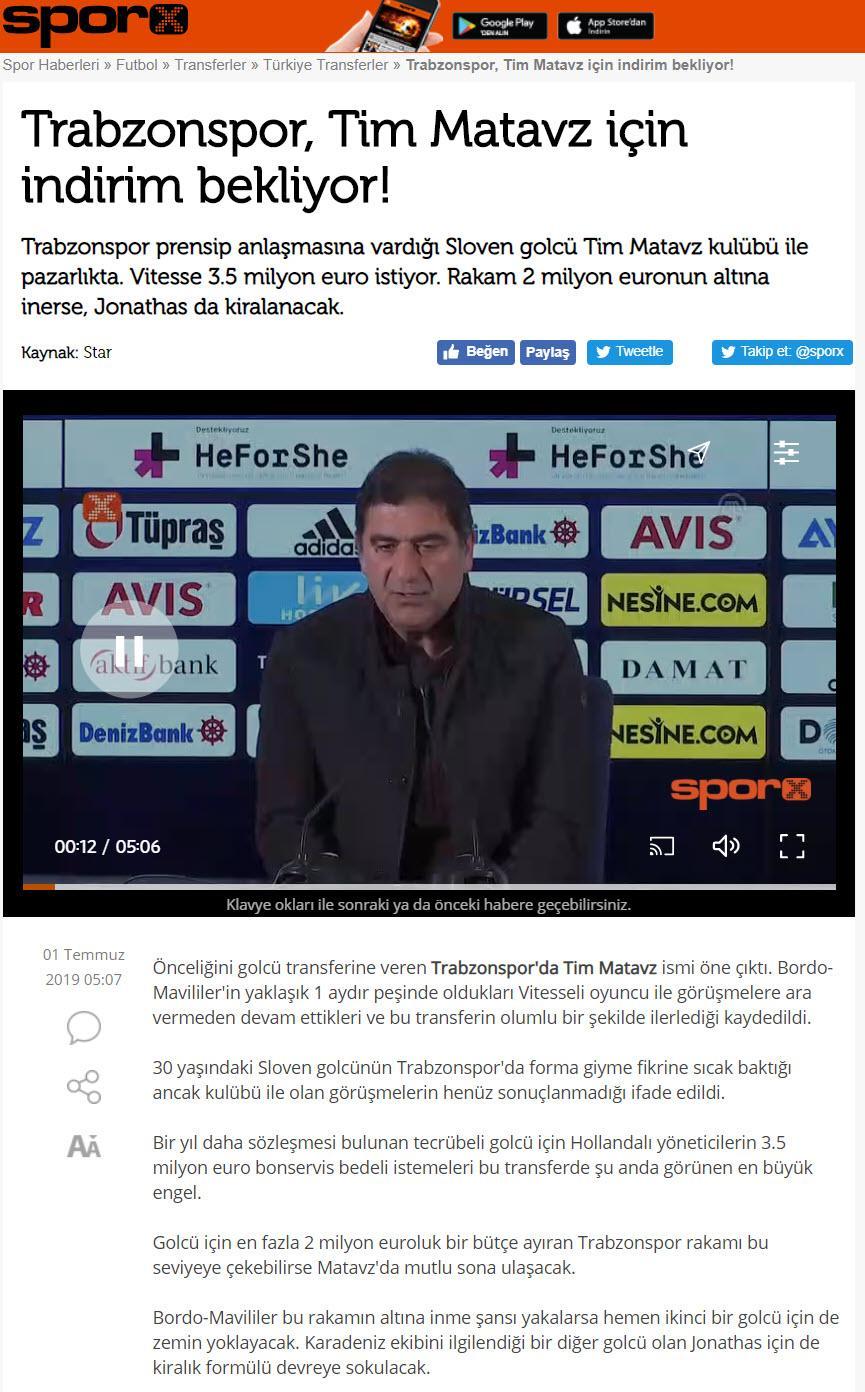 Trabzonsor heeft volgens de Turkse media een bod van 2 miljoen euro uitgebracht op de centrumspits van Vitesse, Tim Matavz. Vitesse zou echter niet voor een bedrag onder de 3,5 miljoen in gesprek willen.
