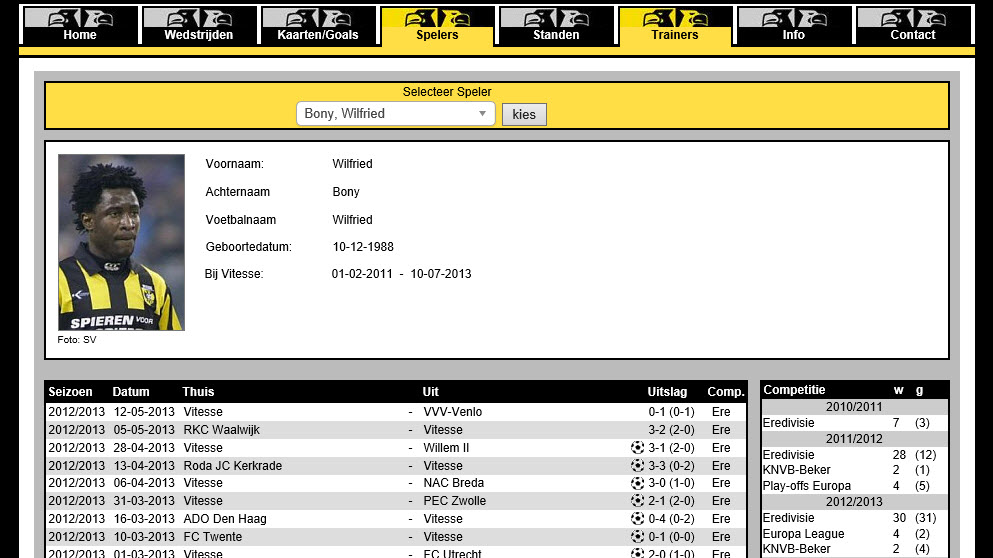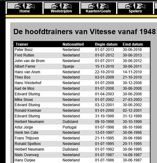 Vele spelers hebben in al die wedstrijden hun opwachting gemaakt. Wil je weten of onze huidige hoofdtrainer, Peter Bosz, ooit gescoord heeft voor Vitesse in een officiële wedsrtijd dan zoek je dat eenvoudig op.