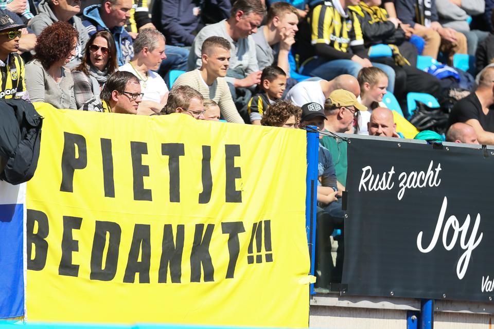 De supporters trakteerden de tweede doelman van Vitesse vervolgens op een groot applaus en zongen massaal 'Pietje bedankt'. Ook tijdens het competitieduel werd Velthuizen in de 22ste minuut (zijn rugnummer) door een deel van het Arnhemse publiek toegezongen in Gelredome.