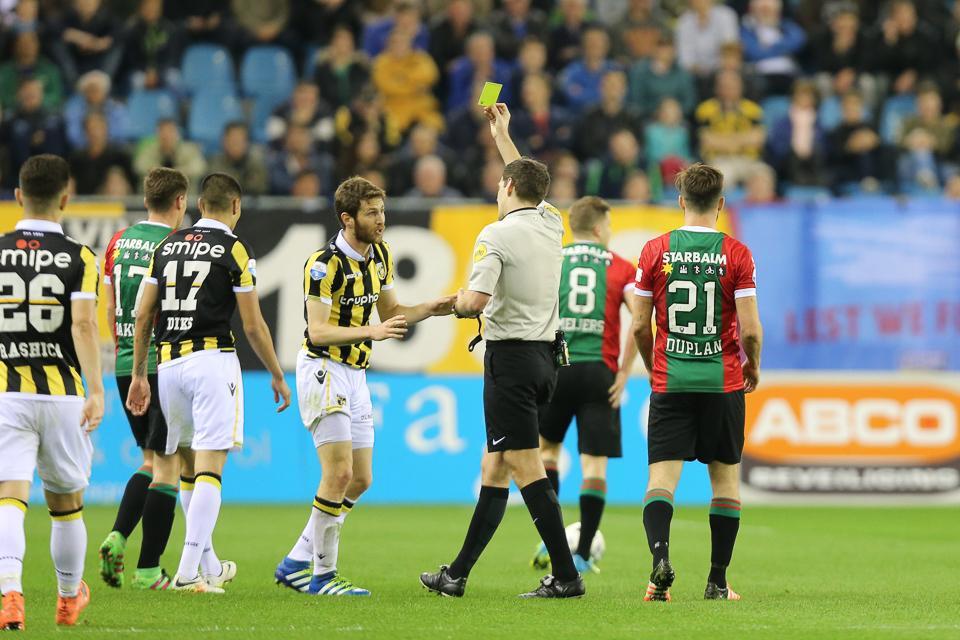 Zaterdag zagen drie Vitesse-spelers tijdens het duel Vitesse – ADO Den Haag geel. Voor Ota, Yeini en Van der Werff was dat hun vierde gele kaart.
